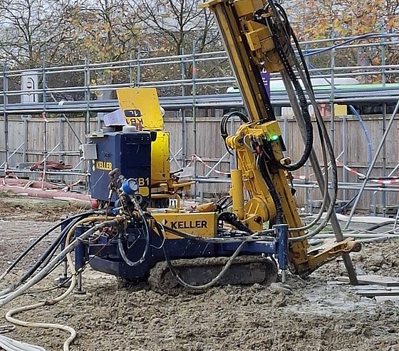 Im Rahmen des Exkursionstags der Fakultät hatte der Geotechnik-Lehrstuhl zusammen mit mehreren Studierenden die Gelegenheit, die Unterfangungsarbeiten für den Neubau der Universitätsbibliothek Dortmund zu besichtigen. Hierfür errichtete die Firma Keller Grundbau GmbH mit ihrem kleinsten, strombetriebenen Bohrgerät Düsenstrahlsäulen unterhalb der Fundamente und des Medienkanals.